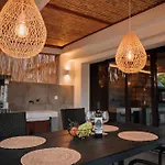 到罗德国际机场开车约需15分钟. 您可以在露台上欣赏花园景色. 这栋别墅内的休闲设施包括无限边缘水池.